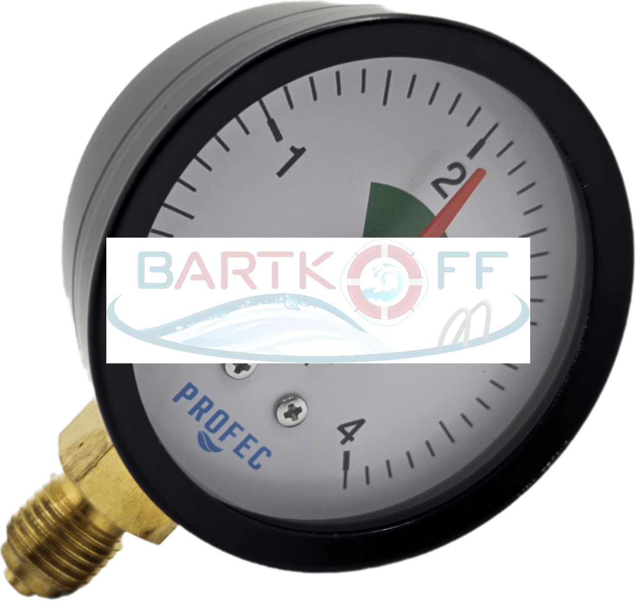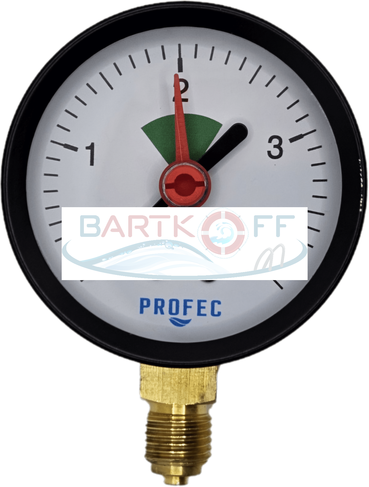 Manometr suchy marki Profec to precyzyjne urządzenie pomiarowe, zaprojektowane do monitorowania ciśnienia w różnorodnych instalacjach przemysłowych. Wyposażony w średnicę tarczy 63 mm oraz zakres pomiarowy od 0 do 4 bar, zapewnia dokładne i czytelne odczyty.