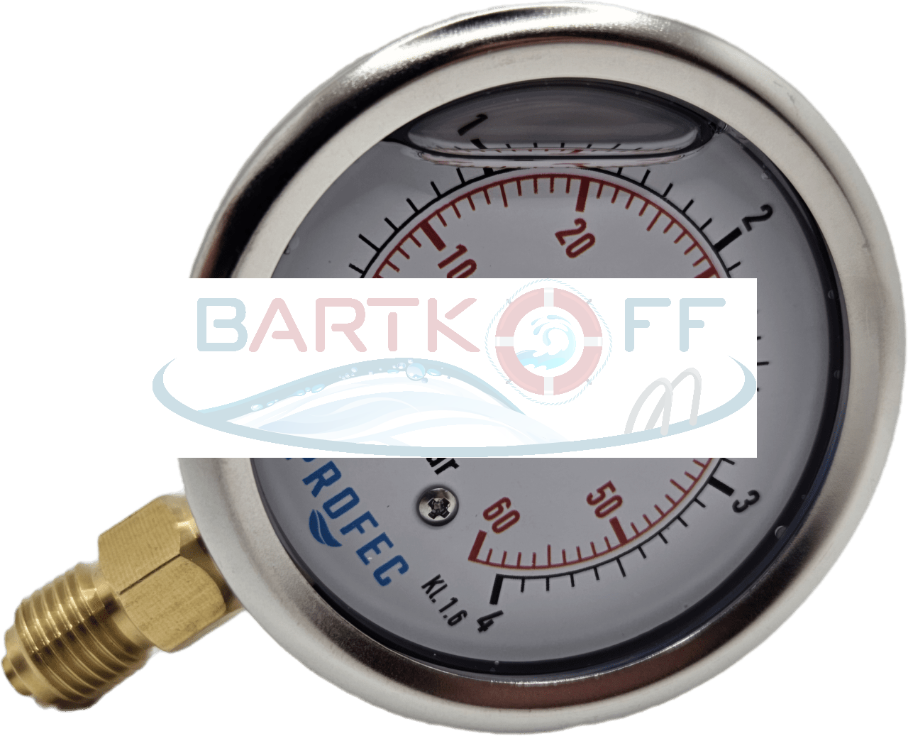 Manometr glicerynowy 63 mm 0-4 bar GZ 1/4" wyjście boczne Profec